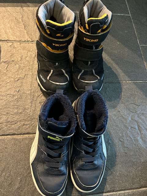Kvalitetsskor kan vara ganska dyra. Genom att köpa begagnade kan du till exempel få vinterstövlar till ett lägre pris, och kanske till och med ett extra par för de morgnar då stövlarna inte hunnit torka efter lek i snön. Mellansäsongsskor, barnsneakers och gummistövlar blir snabbt för små när barnen växer. Om du planerar att köpa begagnade barnskor - kontrollera skornas skick i annonsen och kolla storlekstabellen på tillverkarens hemsida.