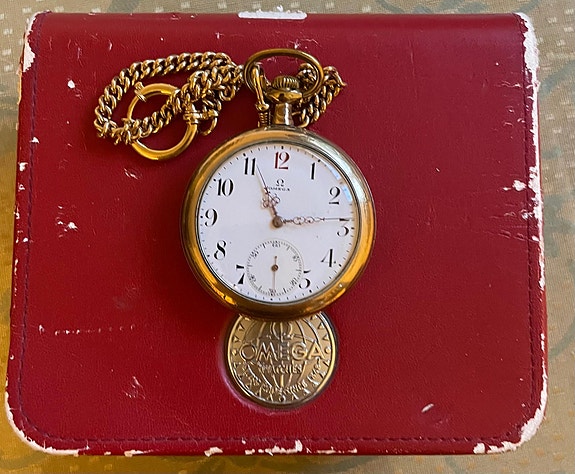 Omega fickur med kedja i guld
