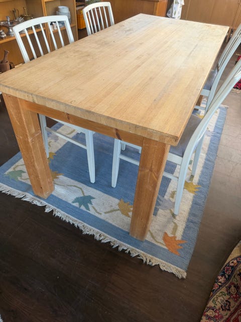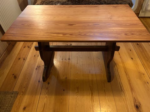 Äldre matbord i furu