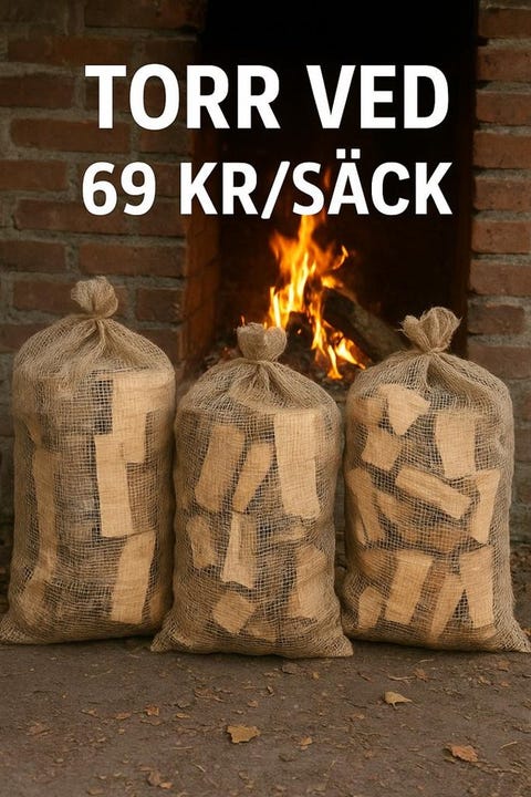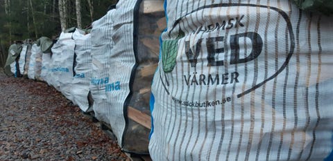 Ved i 40L säckar