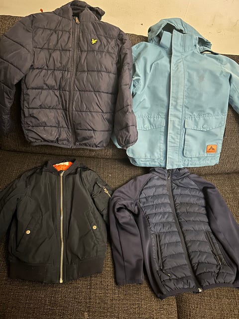Under vintern är det viktigt att hålla de små varma med rätt kläder: ulliga heldräkter, sockor, vantar, mössor och ytterkläder. En overall är ofta snabbare att ta på än separata jackor och byxor, och snön har svårare att tränga in. I annonserna bör du kolla skicket på ytterkläderna, till exempel hur bra muddar och ben kan justeras, om det finns många reflexer och om kläderna är vattentäta.