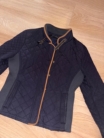 Gå till resultatenQuiltad mörkblå Zara jacka i storlek Large