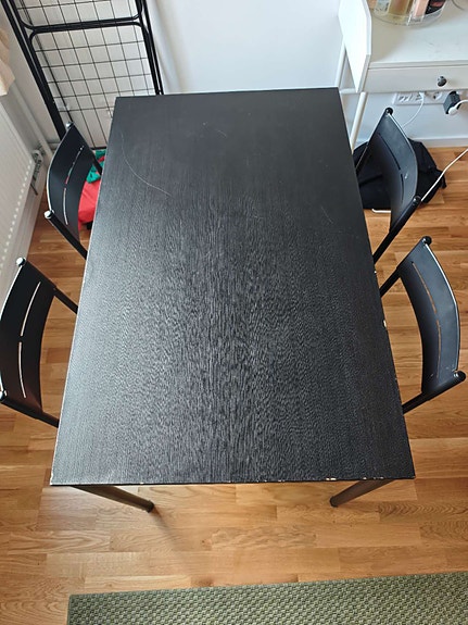 600 krIKEA matgrupp med bord och 4 stolar, svart trä IKEAGävle1 dagLägg till i favoriter.Öppna annons