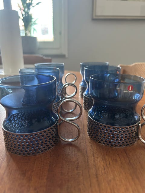 300 krIittala glas med metallhållare 6-pack blå. 300 kr för alla 6 IittalaStockholm1 dagLägg till i favoriter.