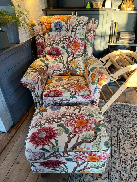 Fåtölj med puff