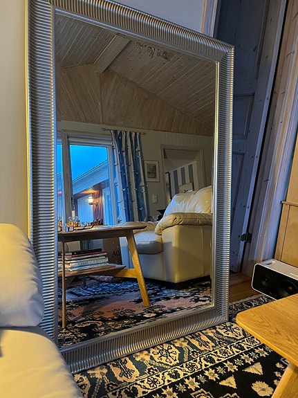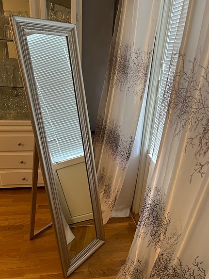 Sovrumsmöbler säljes – säng, byrå, skrivbord stol, spegel med belysning, gardin