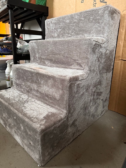 Stor trappa för hund i grå plysch