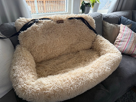 Pelsbarn hundbädd bilsäte beige pälsimitation