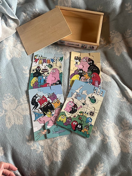 Barbapapa träpussel med trälåda flerfärgade motiv