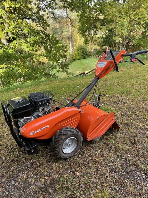 Trädgårdsredskap - från skottkärror till sopmaskiner och hängrännerensare kan köpas begagnade