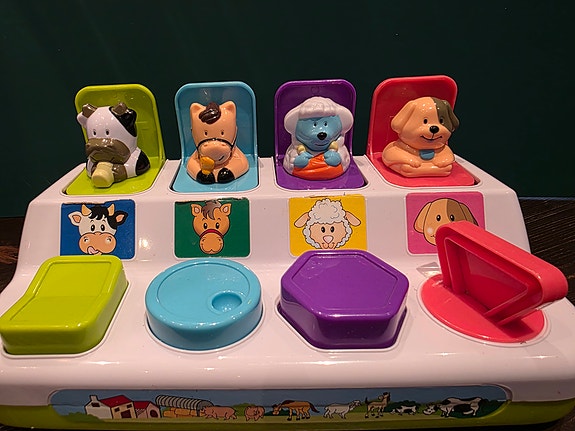MEGCOS Pop-Up Animal Friends: Kanin, Kyckling, Björn och Ko. Aktivitetsleksak