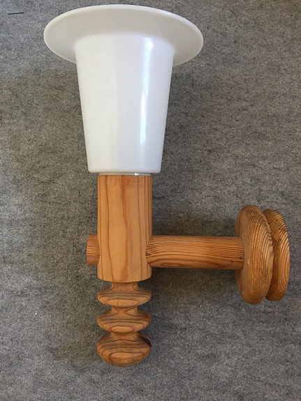 Vägglampor i furu 1960/70-tal av Uno Kristiansson