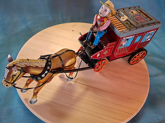 Overland Stage Coach leksaksvagn med häst och kusk plåt röd