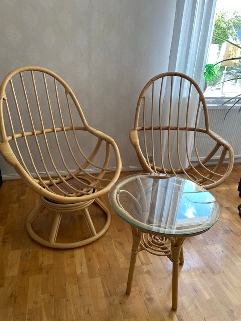 3 200 krRunt trädgårdsbord med 6 stolar och blå dynorTrelleborg1 timLägg till i favoriter.Öppna annons