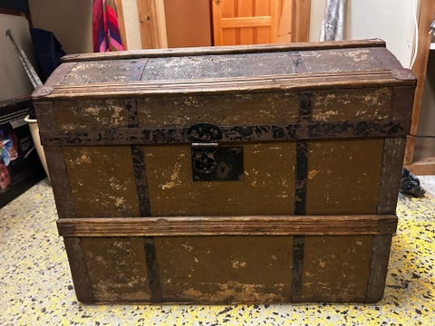 Träkista / koffert i trä med metallbeslag