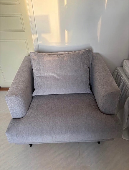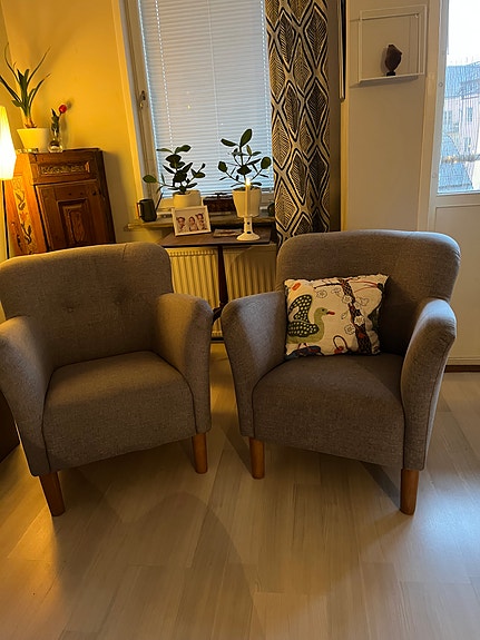 Två stilrena fotöljer - grå