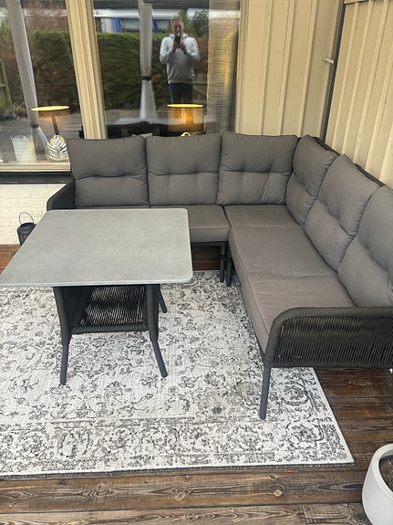Hörngrupp utemöbler med bord grå