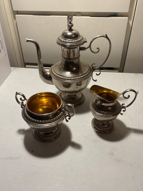 250 krKaffekanna i nysilver med gräddkanna och sockerskålStockholm6 dagarKöp nuLastbil i rörelseKan skickasLägg till i favoriter.