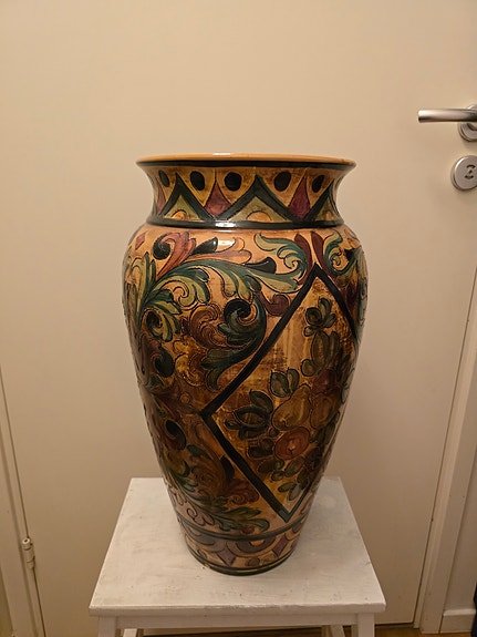 Stor handmålad italiensk keramikvas – Osvaldo Dolci, Gualdo T. – ca 52 cm