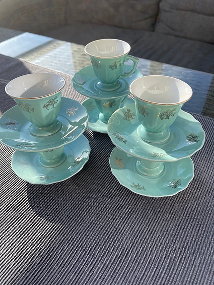 Kaffe/tekoppar med fat turkos porslin