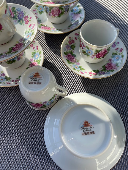 Japan China porslin kaffekoppar med fat blommigt mönster
