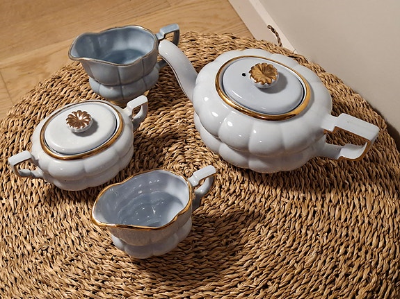 Gefle tekanna etc Grand ljusblå med guldkant