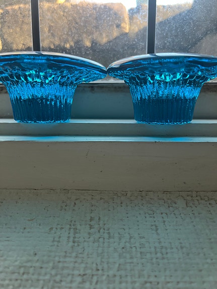 Ljusblå glasljusstakar med struktur i pressglas