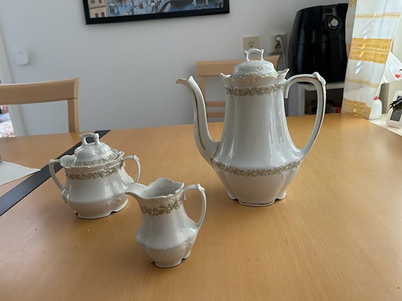 Kaffekanna med sockerskål och gräddkanna