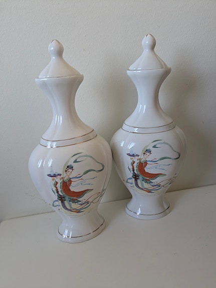 Tangshan Huayi porslinsvaser med lock vit med dekor
