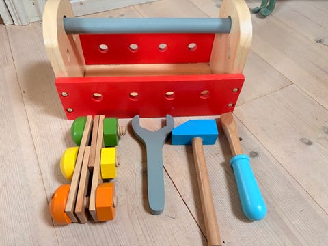 Leksak verktygslåda i trä
