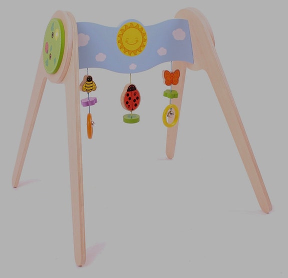 Bigjigs babygym i trä med en skinande sol och färgglada hängen