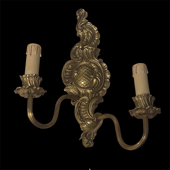 Vägglampa i Mässing - Rokoko-stil - Tvåärmad Lampett - 1900-talet