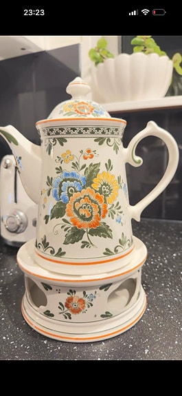 Villeroy & Boch kaffekanna med värmare porslin blommönstrad