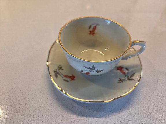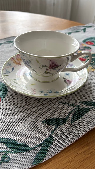 Vintage kaffe/tee koppar med fat Mariehult