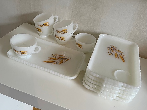 Vintage Anchor Hocking Fire King wheat snackset
