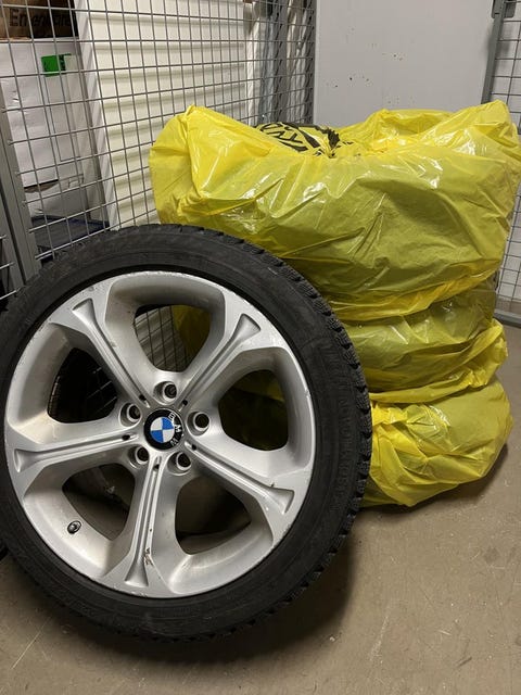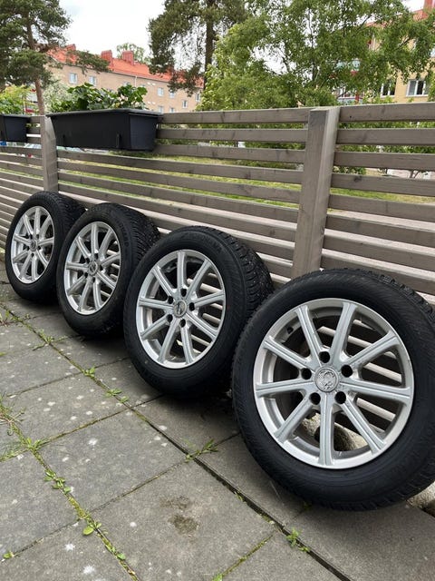 Vinterdäck med fälgar.