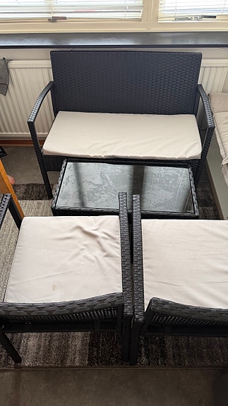 2 000 krSvart konstrotting loungeset med soffa, två stolar och glasbordLandskrona1 timLägg till i favoriter.Öppna annons