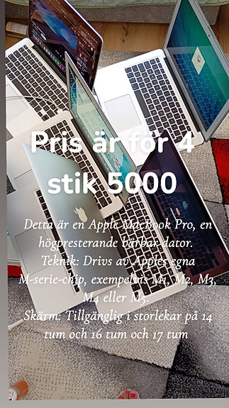 5 000 krApple bärbara datorer paket om flera MacBook Pro och Air AppleHässleholm5 timKöp nuLastbil i rörelseKan skickasLägg till i favoriter.Öppna annons
