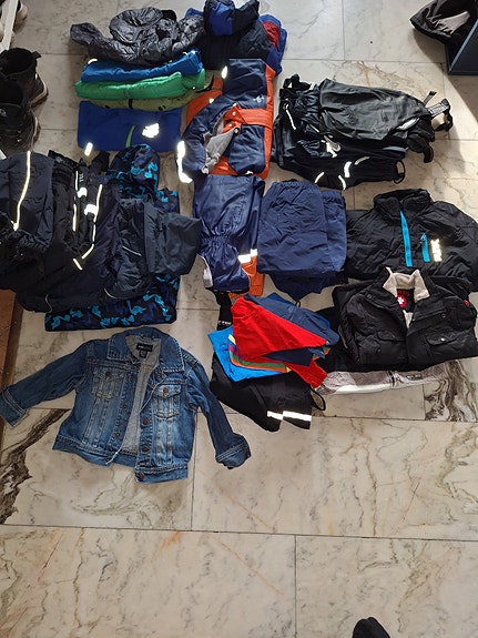 Under vintern är det viktigt att hålla de små varma med rätt kläder: ulliga heldräkter, sockor, vantar, mössor och ytterkläder. En overall är ofta snabbare att ta på än separata jackor och byxor, och snön har svårare att tränga in. I annonserna bör du kolla skicket på ytterkläderna, till exempel hur bra muddar och ben kan justeras, om det finns många reflexer och om kläderna är vattentäta.