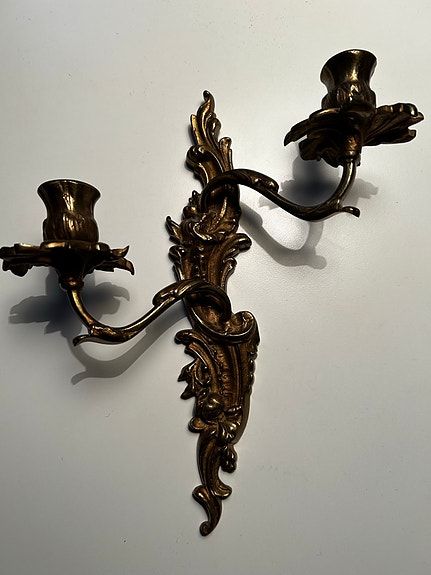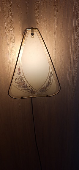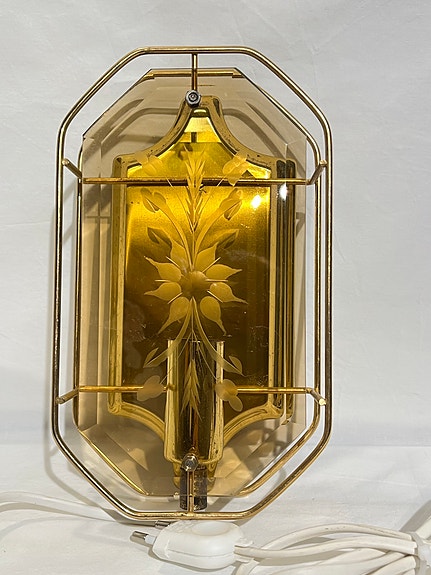 Facklam vägglampa i mässing & bärnstensglas – Vintage 60/70-tal