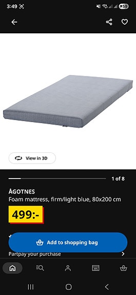 1 200 krIKEA resårmadrass med bäddmadrass 90x200 grå/vit IKEAHässelby6 timLägg till i favoriter.Öppna annons