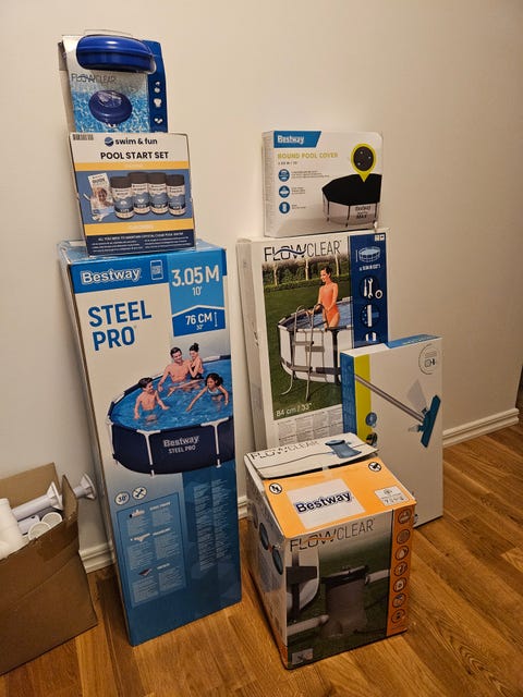 Pool med diverse tillbehör
