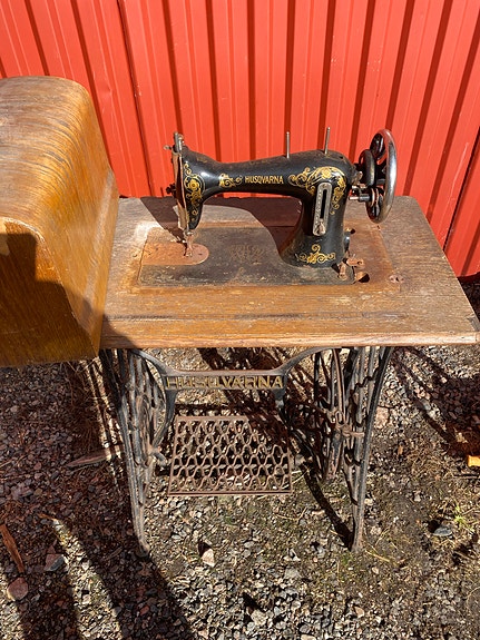 Husqvarna symaskin trampmaskin med träbord