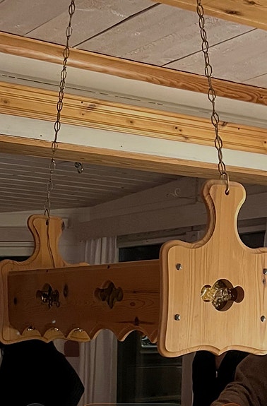 Väggskåp och taklampa