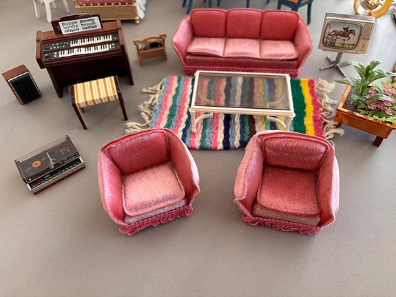 Lundby Dockskåpsmöbler soffgrupp med bord och stereo