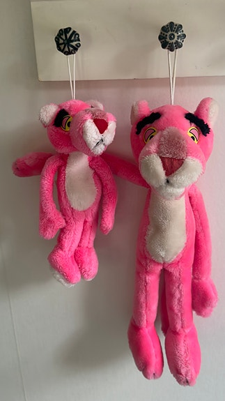 Rosa Pantern mjukisdjur – vintage 1981 (2 st)