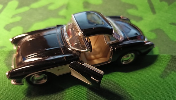 Leksaksbil modellbil svart kupé med öppningsbara dörrar