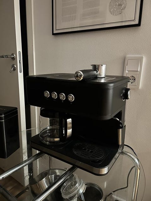 En vanlig kaffemaskin, bryggare eller en mer avancerad espressomaskin kan hittas billigare begagnad