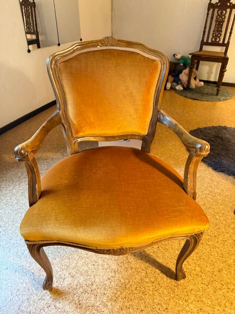 600 krTrästol och fåtölj med stoppad sits och rottingdetaljer brun/guldAlingsås1 timLägg till i favoriter.
