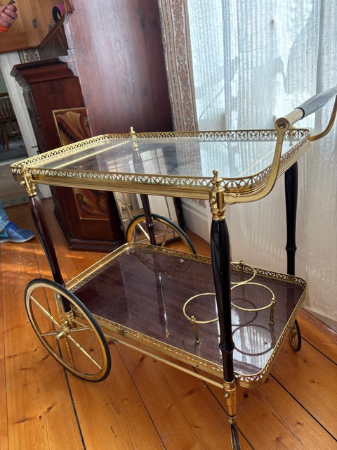 8 999 krExklusiv vintage serveringsvagn / drinkvagn i mässing, glas och mörkt träVallsta1 timLägg till i favoriter.Öppna annons